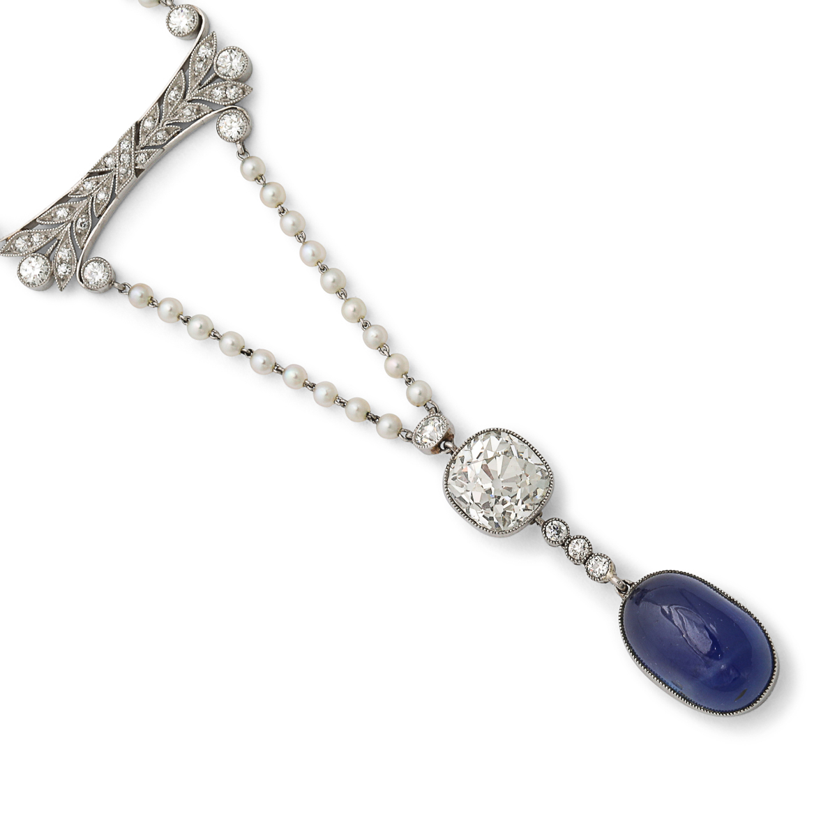Antique Tiffany & Co. Diamond, Pearl, and Sapphire Necklace